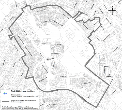 Der Rat der Stadt der Stadt Mülheim an der Ruhr hat in seiner Sitzung am 15. Mai 2025 den Satzungsbeschluss für die 1. Änderung des Bebauungsplanes „Saarner Kuppe II/Luxemburger Allee – O 25“ gefasst.