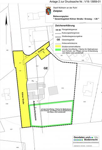 - Planungsrechtliche Sicherung der öffentlichen Erschließung über den Erzweg zwecks Anbindung des geplanten Gewerbegebietes an die Kölner Straße – Verbot der Ein- und Ausfahrt von/ in die Kölner Straße sowie Anbauverbotszone gemäß Bundesfernstraßengesetz.