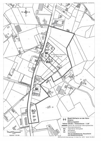 - Planungsrechtliche Sicherung und Neuordnung der vorhandenen nicht störenden gewerblichen Nutzung sowie der Wohnnutzung im Bereich der Kölner Straße durch Festsetzung von insgesamt zwei gemischten Bauflächen.