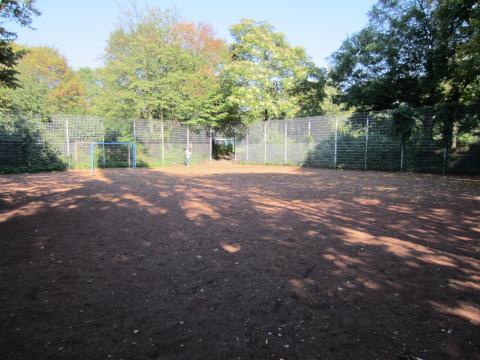 Der Ascheplatz befindet sich im Anschluss an einen Spielplatz und ist für jeden frei zugänglich.