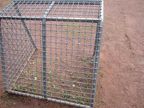 Die kleinen speziellen Tore sind die Besonderheit des kleinen Ascheplatzes. Kleine Spiele ohne Torhüter bieten sich hier besonders an.