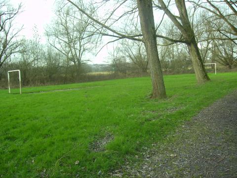 Der Wiesenplatz am Ruhrstrand ist mit zwei Toren ohne Netzt ausgestattet. Die Wiese ist sehr hoch, es gibt keine Markierungen, Bäume sind im Weg und wenn man aufs Tor schießt landet der Ball zwangsläufig im Gebüsch. Es gibt dort allerdings auch einen Spielplatz und einen Grillplatz. Gerade im Sommer bietet sich dort eine super Atmosphäre. Alles in allem ist es zwar kein toller Platz aber ein guter Ort um neben dem Grillen oder "chillen" auch mal eine Runde zu kicken!