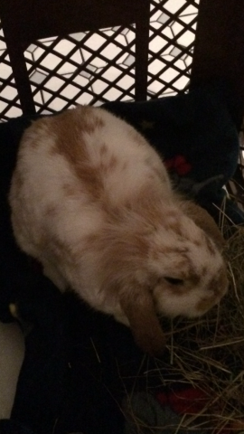 Weiß mit hellbeigen Ohren und Punkten auf dem Rücken