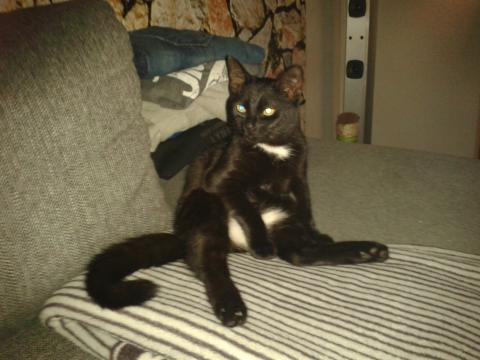 Ein ziemlich schreckhafter und bei fremden ängstlicher Kater den man aber durch ein bischen gut zureden und vielleicht einem leckerli zu sich locken kann!