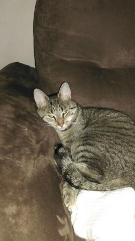 braun getiegert mit etwas weiß am Mund