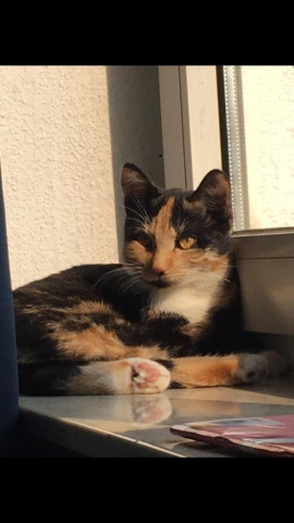 Entlaufen am 8.3.2021 am Dickswall 6 in Mülheim. Sie muss aus dem Fenster im 4.Stock entwischt sein..