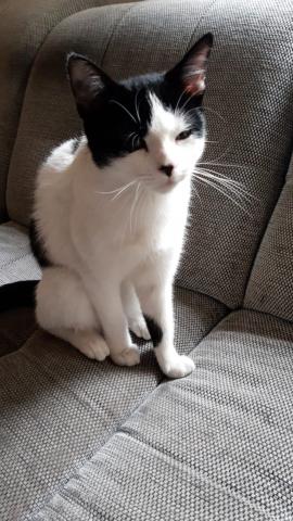 weiß-schwarz, schwarzer Punkt auf der Nase
