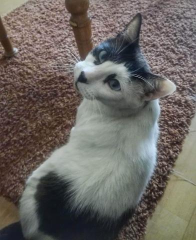 auffällige Gesichtszeichnung mit schwarzer "Augenklappe" sehr helle blaue Augen schwarze Herzchennase