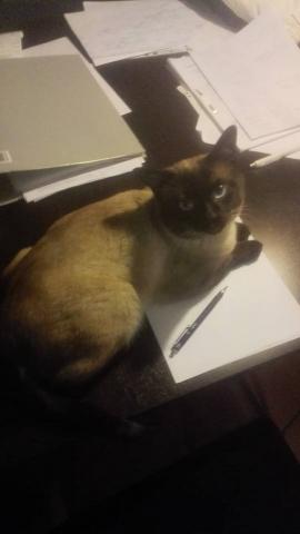 Brauner Kopf, braune Pfoten, brauner Schwanz, sonst "creme", typisch Siam...blaue Augen