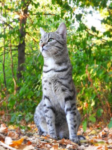 Anfangs sehr scheu, ansonsten sehr verspielt, verschmust und neugierig. Kleine, punktartige Verletzung unter seinem Kinn. Ringartige Zeichnung auf der Brust