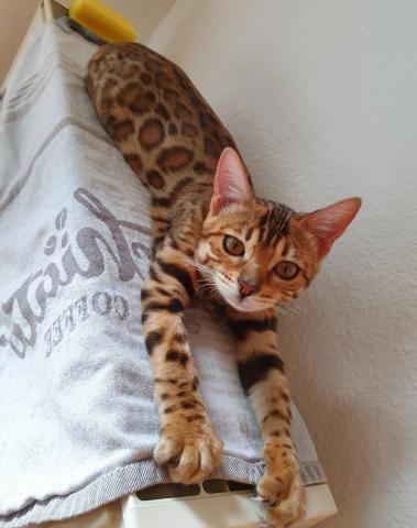 Bengal Katze, sieht aus wie ein kleiner Leopard.