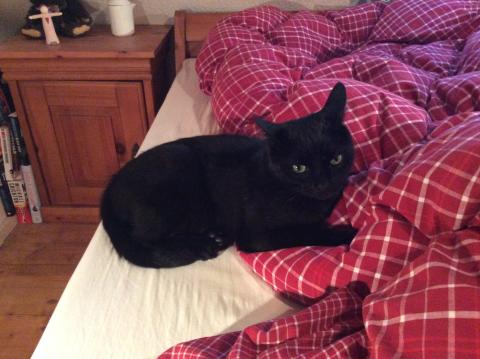 Zutraulicher kleiner schwarzer Kater, der schon einige Tage in unserer Siedlung umher irrt.